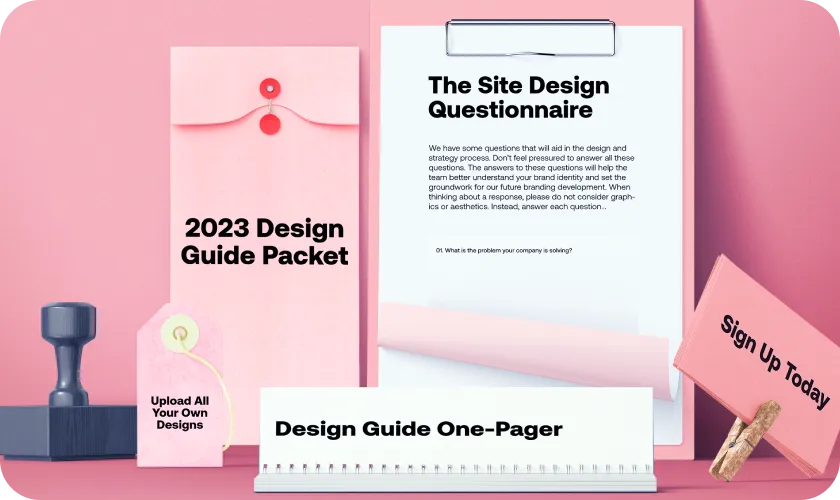 Upload all of your brand assets for us to use. Don’t have any or just starting the process? Download our design guide one-pager using the link here.